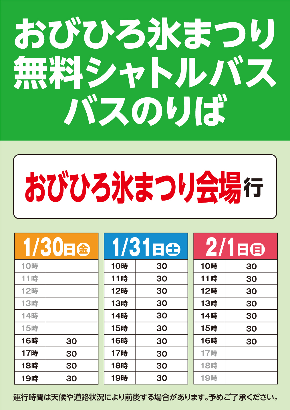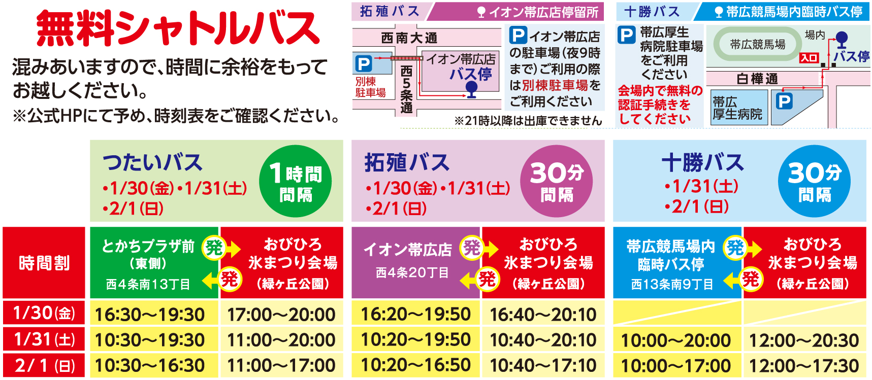 おびひろ氷まつり会場→帯広競馬場内臨時バス停
